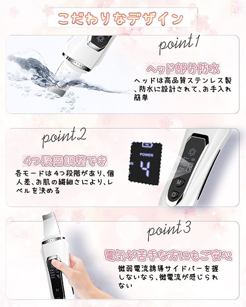- 【電気が苦手な方にもご安心】 本体の両側、微弱電流誘導サイドバー付き。微弱電流誘導サイドバーを握しないなら、微電流が感じられません。超音波周波数:24000Hz 電池容量:500mAh ヘッド素材:ステンレス。USB充電式ので海外でも使えます。使いやすい、持ち運びや収納にも便利ので、出張や旅行する時にも使えます。