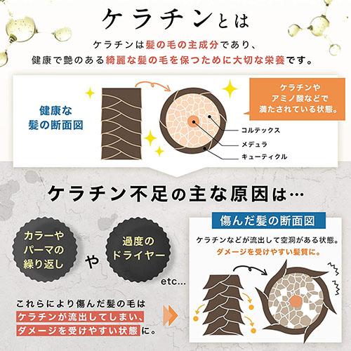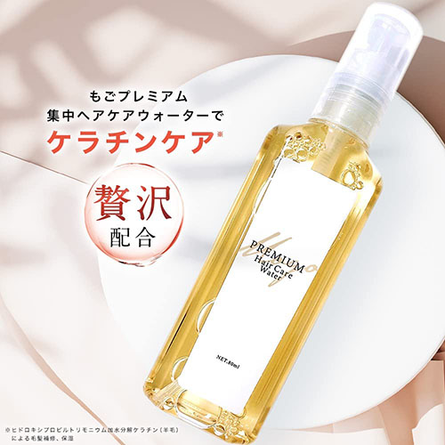 もごプレミアム集中ヘアケアウォーターは、髪の毛の主成分であるケラチンやアミノ酸を主成分にした濃色トリートメントウォーターです。