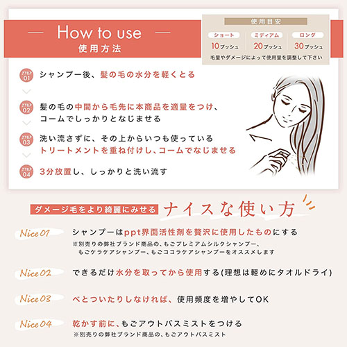 髪の毛がパサつく、ダメージが気になる、艶感が欲しい。そんな場合に特にオススメです。